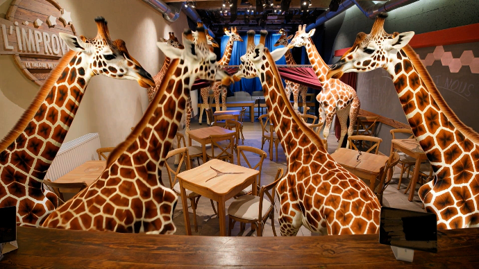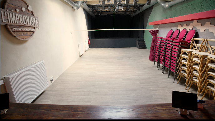 In front of the stage, several rows of chairs. On the bar side, our handmade decorated tables add an extra touch of warmth to properly welcome your audience before and after the show.