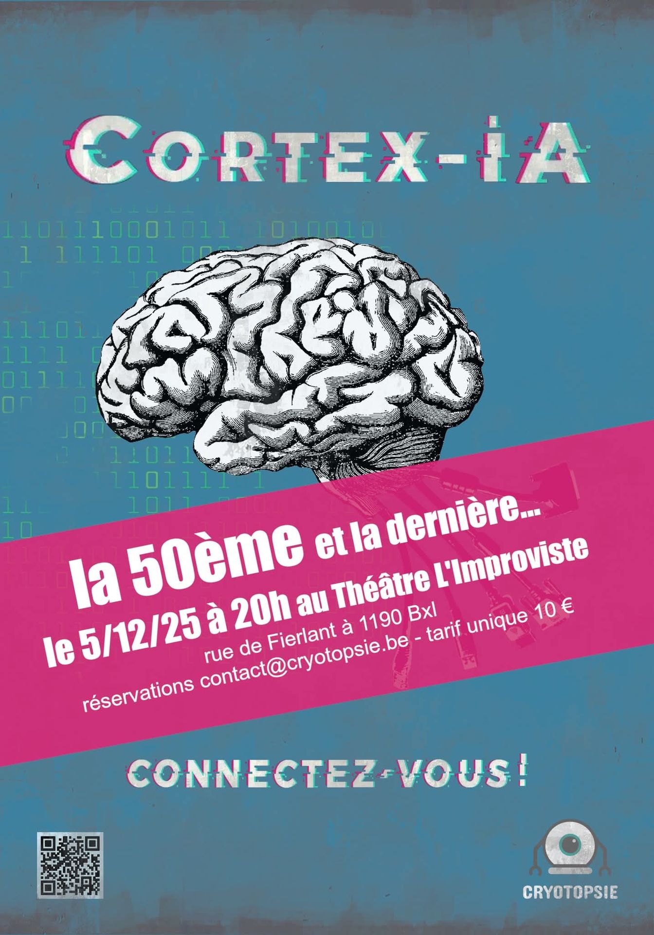 Comédie de science-fiction, Cortex-iA pose la question du transhumanisme tout en abordant différents enjeux des nouvelles technologies : l’intelligence artificielle, l’open source, la surconnexion, les publicités ciblées et le big data…